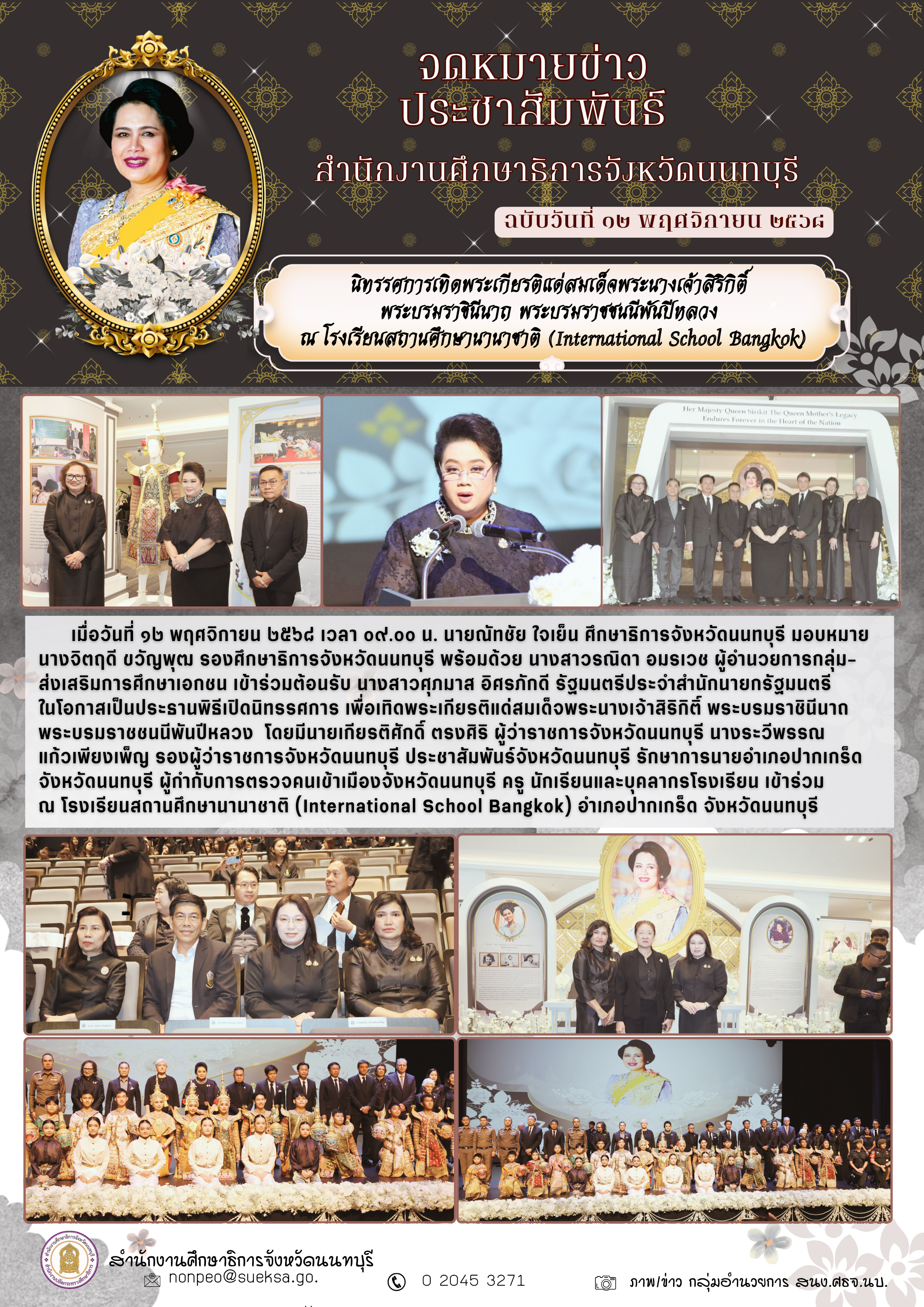 นิทรรศการเทิดพระเกียรติแด่สมเด็จพระนางเจ้าสิริกิติ์ พระบรมราชินีนาถ พระบรมราชชนนีพันปีหลวง ณ โรงเรียนสถานศึกษานานาชาติ (International School Bangkok) ไฟล์แนบ : 990198.png