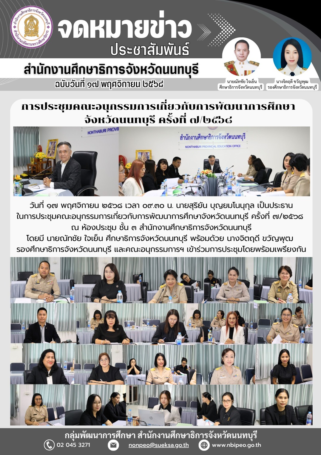 การประชุมคณะอนุกรรมการพัฒนาการศึกษาจังหวัดนนทบุรี ครั้งที่ ๗/๒๕๖๘