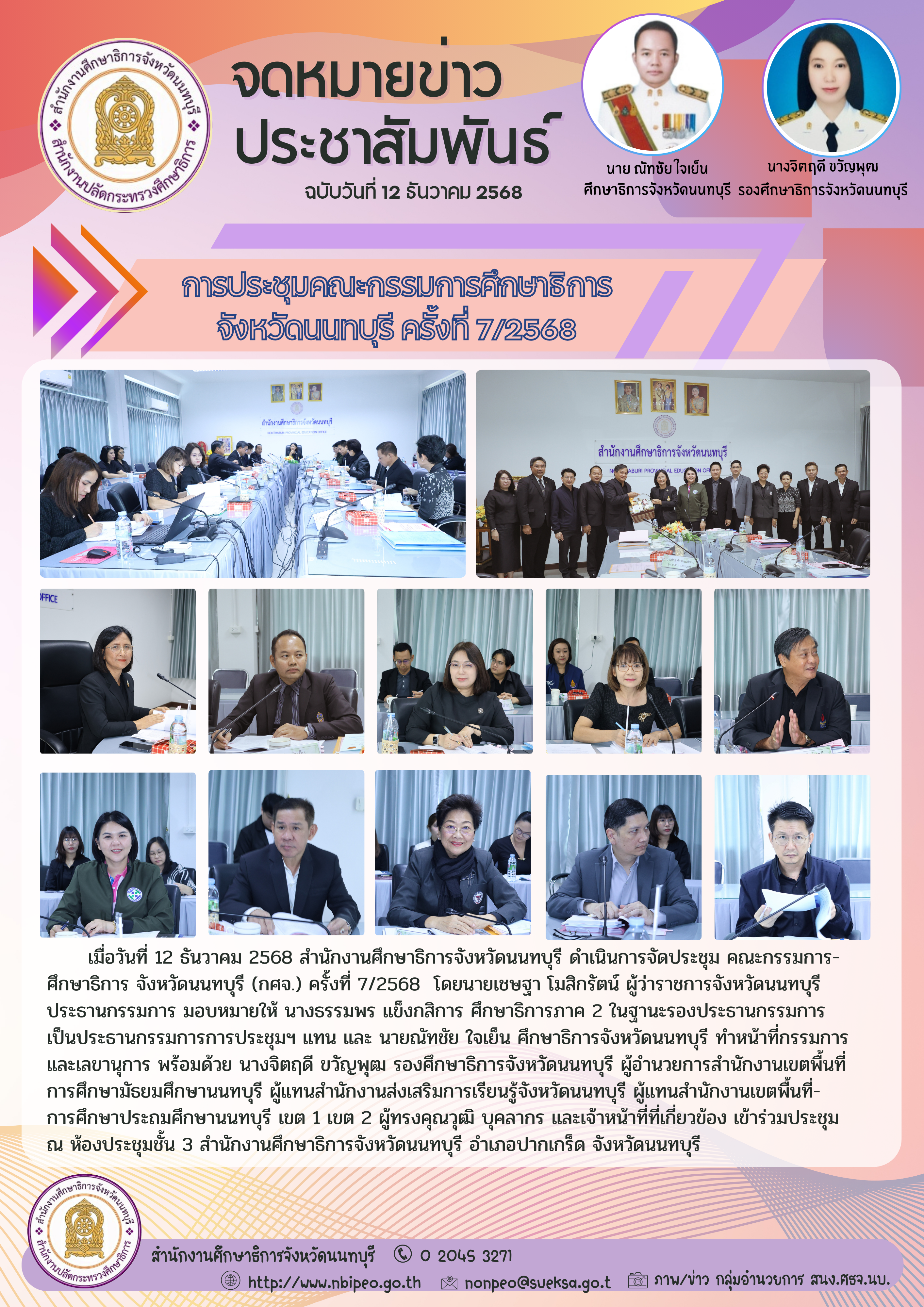 การประชุมคณะกรรมการศึกษาธิการจังหวัดนนทบุรี (กศจ.) ครั้งที่ 7/2568