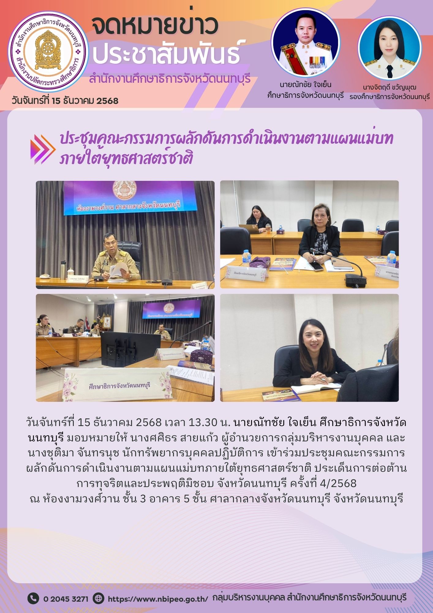 การประชุมคณะกรรมการผลักดันการดำเนินงานตามแผนแม่บทภายใต้ยุทธศาสตร์ชาติ