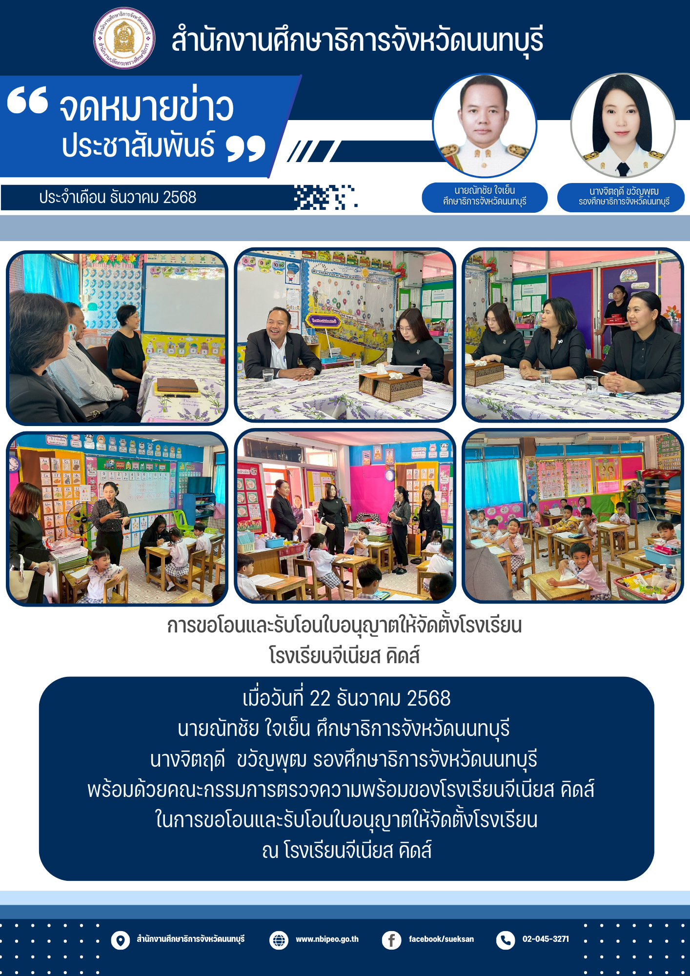 การขอโอนและรับโอนใบอนุญาตให้จัดตั้งโรงเรียน ณ โรงเรียนจีเนียส คิดส์