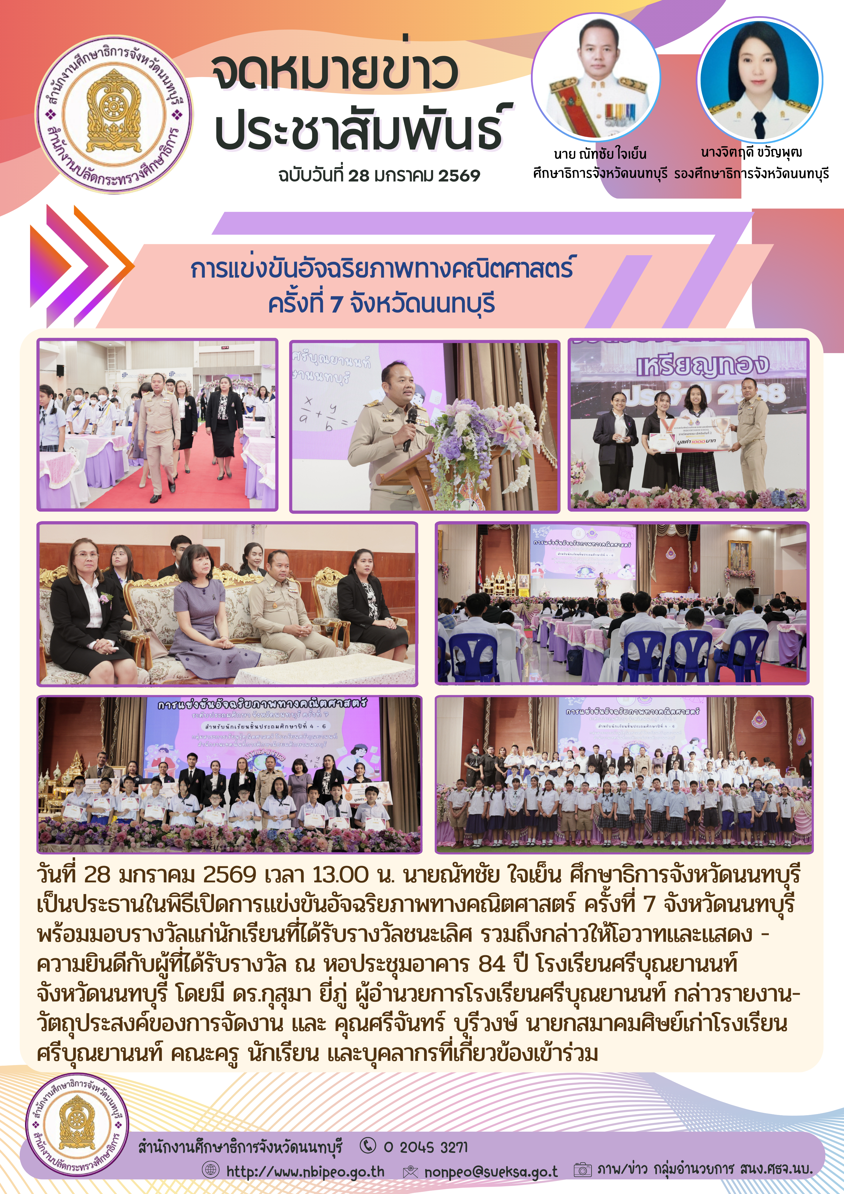 การแข่งขันอัจฉริยภาพทางคณิตศาสตร์ ครั้งที่ 7 จังหวัดนนทบุรี