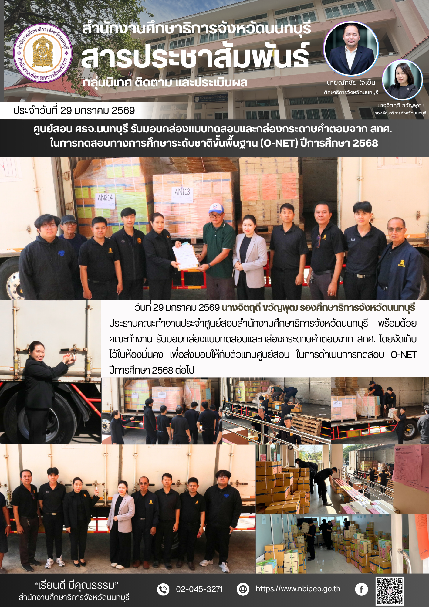 ศูนย์สอบ ศธจ.นนทบุรี รับมอบกล่องแบบทดสอบและกล่องกระดาษคําตอบจาก สทศ. ในการทดสอบทางการศึกษาระดับชาติขั้นพื้นฐาน (O-NET) ปีการศึกษา 2568 ไฟล์แนบ : _ประชาสัมพันธ์_ศน.ศธจ._งบ_69_.png