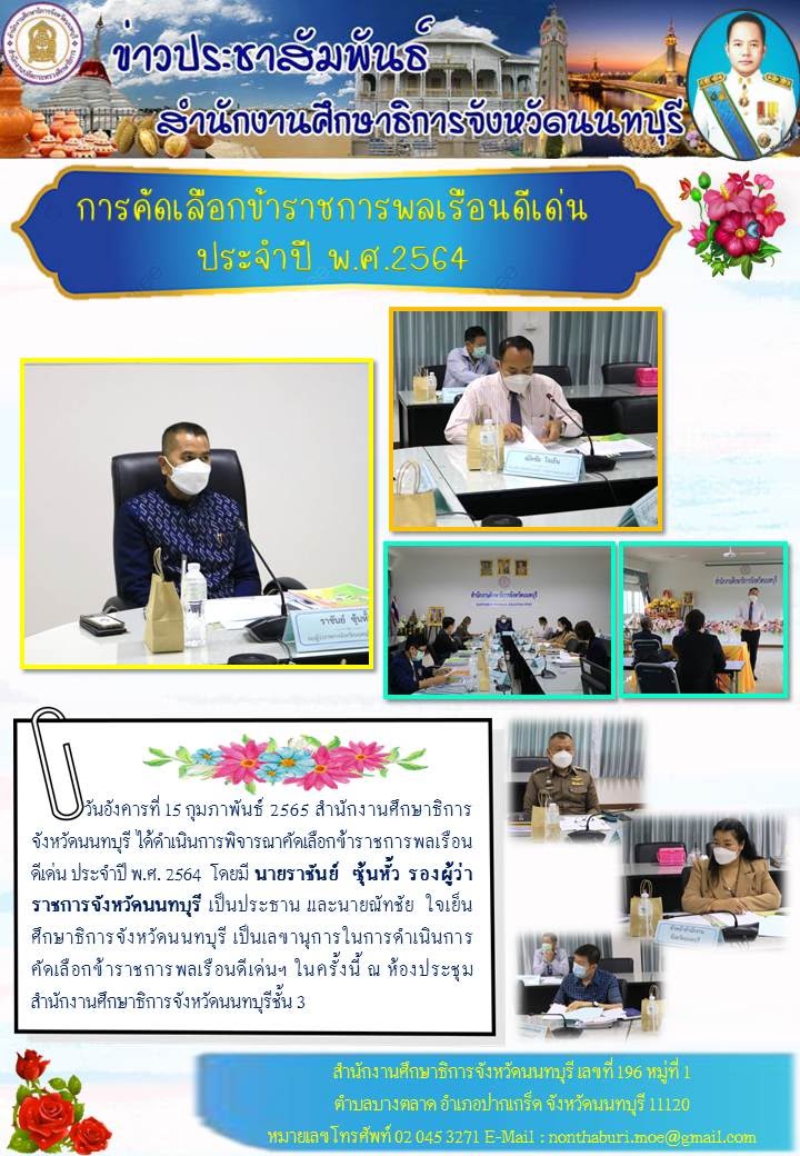 สำนักงาน ศธจ.นนทบุรี เป็นเลขานุการในการดำเนินการคัดเลือกข้าราชการพลเรือนดีเด่นของจังหวัดนนทบุรี ประจำปี พ.ศ.2564 ณ ห้องประชุมสำนักงานศึกษาธิการจังหวัดนนทบุรี ชั้น 3 (15 ก.พ.65) ไฟล์แนบ : 2.การคัดคัดเลือกข้าราชการพลเรือนดีเด่น_15_กพ.jpeg